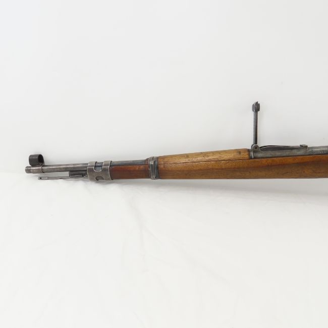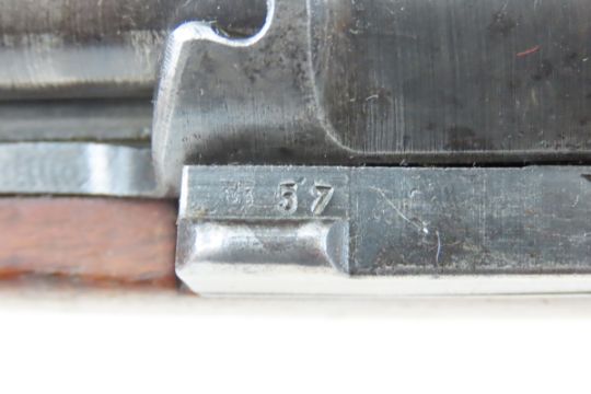 1941 Oberndorf byf Mauser K98k Rifle 7.92x57mm - SN# 2957aa- all visible are matching, Waffenamt. no import mark, overall good. Receiver top marked "byf 41" (Mauser-Werke KG, Oberndorf on the Neckar), left side marked "eagle/swastika 2957 aa Mod 98",right side marked with 3 "eagle/359". 23.62" barrel left side marked "eagle/swastika 2957", ring "7,91". Bolt handle marked "2957 aa", striker housing, safety & cocking piece marked "2957", cocking piece also marked"eagle/655", bolt stop marked "eagle/655 57". Rear v notch tangent sight to 2,000 meters base right marked with 2 "eagle/WaA655", base "eagle/655", leaf marked with 2 eagle/655" and "2957", slide marked "eagle/655 57".Front hooded sight "eagle/WaA103", cleaning rod. Front band marked "2957 eagle/WaA655", lower band marked "2957 eagle/655". Trigger guard has 2 "eagle/WaA655" and "2957, floor plate "eagle/WaA655 2957", 2 screws "57",recoil lug marked "eagle/655". Wood stock marked wrist "eagle/swastika/WaA655", underside "2957 aa" right side marked "eagle/swastika H eagle/swastika/WaA655 eagle/swastika/WaA6655", sling slot marked "63" on left and "1" on right. Steel cupped butt plate marked "bpr eagle/WaA497 2957". OAL 43.5". C&R or FFL transfer required, please know local laws before bidding. Please ask questions & read terms conditions before bidding.
