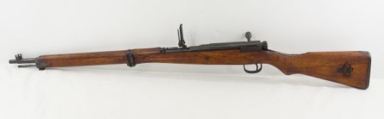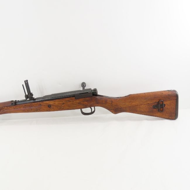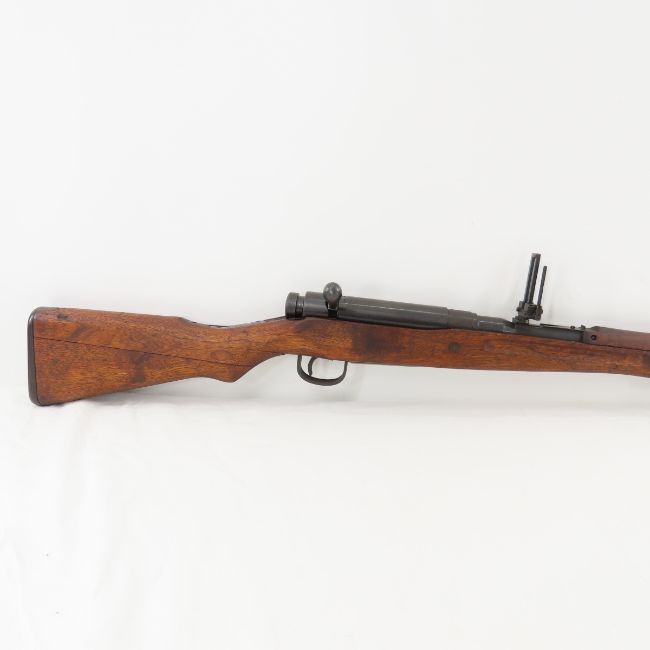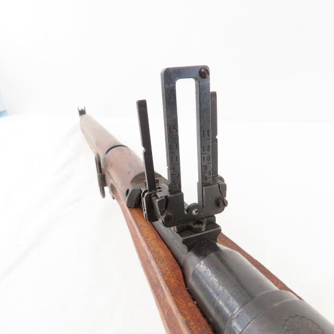 WWII Japanese Type 99 Arisaka Rifle 7.7mm - SN# 28062, No import mark. Receiver marked with mum and kanji (Type 99), left side marked series 5 mark "28062" with Nagoya arsenal mark. Receiver has dust cover. 25.9" barrel, cleaning rod, front blade sight with"ears" and rear anti-aircraft sight., monopod mount- (no monopod), sling loops, wood stock- has been sanded, steel butt plate. 44"OAL C&R or FFL transfer required please know local laws before bidding. Please ask questions & read terms conditions before bidding.
