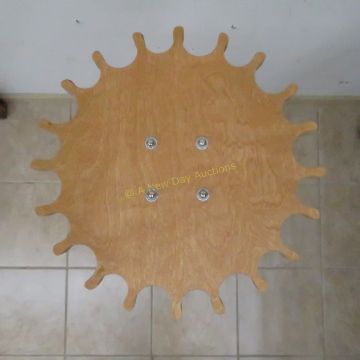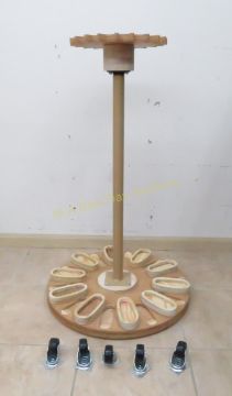 Homemade Wooden 20 Rifle Rack - on spinner and comes with wheels and cover 36", tall, 22" across base. Made from 1994 Vern Grazer pattern Please ask questions & read terms conditions before bidding.