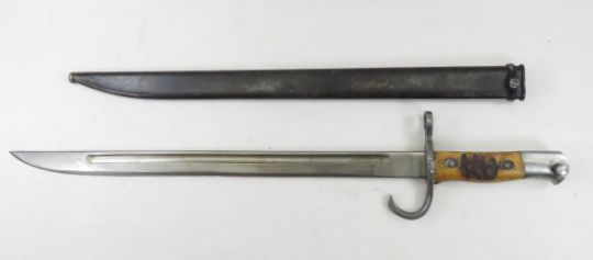 WWII Japanese Navy Type 30 Rocking Star Bayonet - Overall Length: 19.75", Blade: 15.25", Ricasso: Rocking Star, Grip: Personalized Branding Please ask questions & read terms conditions before bidding.