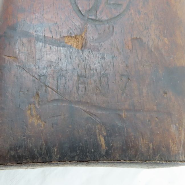 Siamese & Other Mauser K98k Rifle Stocks - both are 37 5/8" walnut stocks with sling loops- very dinged up. 1) one has no marks other than "051413" left side. 2) Other has right side mark: 2 horizontal lines and other mark inside triangle inside circle, leftside looks to be Siamese writing and hard to read serial number, has rusted butt plate and side sling loop, inside marked "62". Please ask questions & read terms conditions before bidding.
