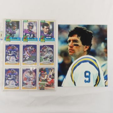 MN Vikings Football Photos & Cards- some signed-cards: signed Steve Jordan card (faded), signed Jake Reed, signed Robert Smith, signed Fred Cox and a handful of other loose cards, 180+ 1988-1990 card in binder pages- Tommy Kramer, Steve Jordan, Randall McDaniel &others. 6 8x10" photo prints, 1971 & 1994 team photo cards, 3 4.25 x 5.5" Ed Sharockman photo cards, and 5 photos, and handful of schedulesPlease ask questions and read terms & conditions before bidding.