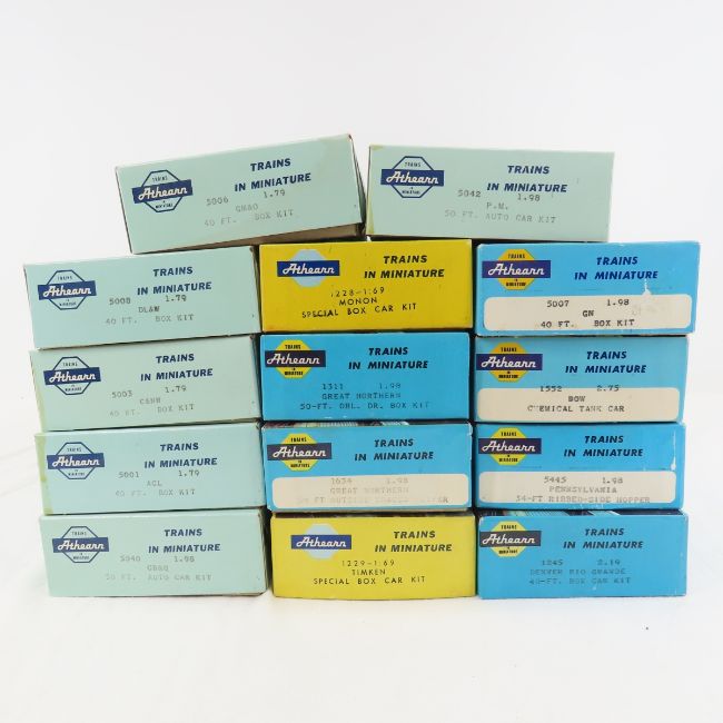 14 HO Athearn Unbuilt Kits in original boxes-(11) decorated (3) Undecorated Freight carsPlease ask questions and read terms & conditions before bidding.