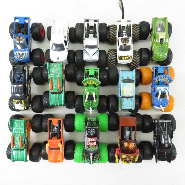 45 1:64 Diecast Monster Trucks, Case, Accessories-Please ask questions and read terms & conditions before bidding.