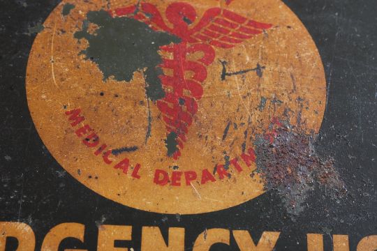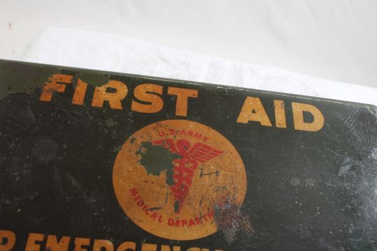 WW2 US Army Medical Dept 1st Aid Kit Empty Jeep - As pictured kit is empty. Would have been kept in the soldier's jeep. As pictured. Please ask questions and read terms & conditions before bidding.