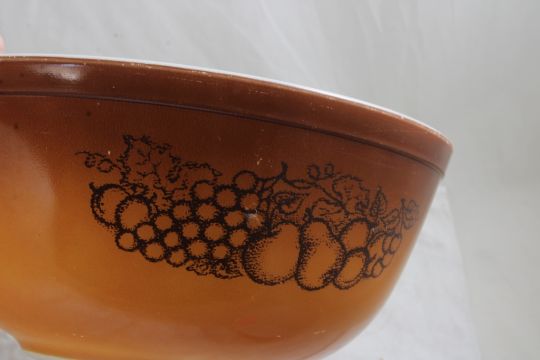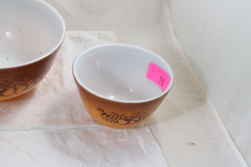 3 Pyrex Old Orchard Set Nesting Bowls - Sizes are 1 1/4 Cups, 2 1/2 Cups & 4 Quart. All as pictured. Please ask questions and read terms & conditions before bidding.