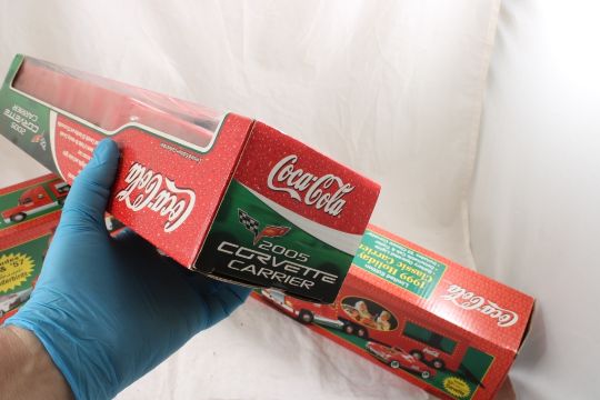 3 Coca Cola Holiday Classic Carriers in Boxes - 1999 with 1953 Corvette, 2001 with 1955 & 1957 Corvettes, 2005 with 2 Corvettes. All as pictured New Old Stock in boxes. Please ask questions and read terms & conditions before bidding.