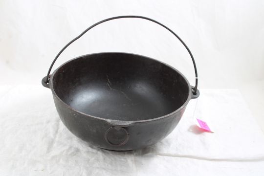 Antique Cast Iron Caldron Kettle 10 1/2" Diameter - 4 1/4" Deep. As pictured. Please ask questions and read terms & conditions before bidding.