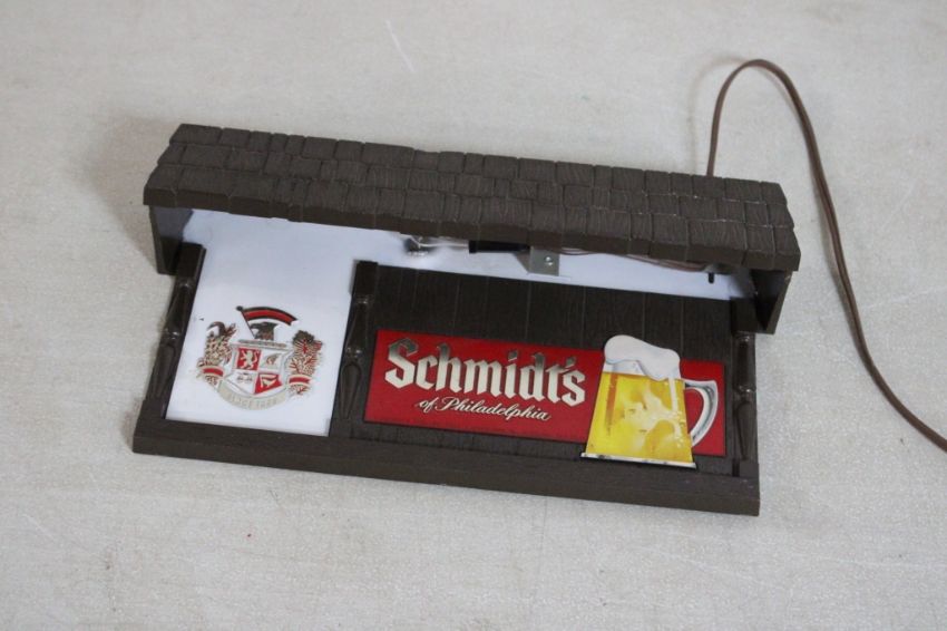 2 Beer Signs Schmidt's of Philadelphia & Schaefer - Schmidt's Beer of Philadelphia Lighted Cash Register Sign measures 11" x 5.75" x 2.5" WORKS and Schaefer Cold Beer to Take Home Sign 1960's Faux Wood measures 20 1/4" x 12". Both as pictured. Please ask questions and read terms & conditions before bidding.