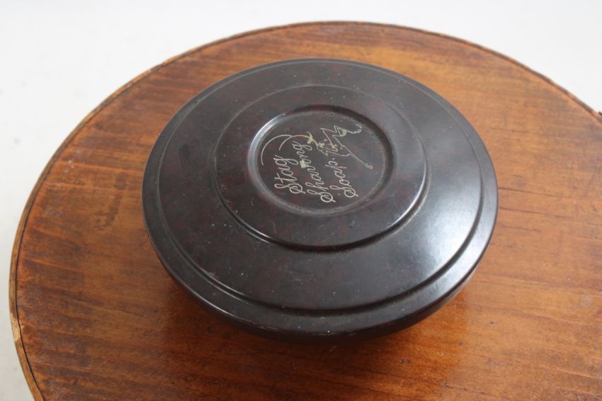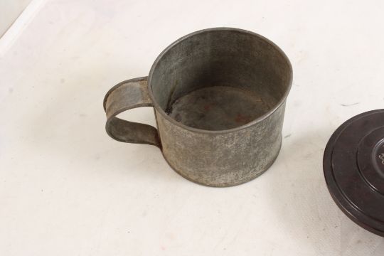 Wood Box 8" D, Wall Match Safe, Soap Box, Cup - 8" Diameter Wooden Box with A Wall hanging Match Safe, Tin Cup and Shaving Soap Box. As pictured. Please ask questions and read terms & conditions before bidding.
