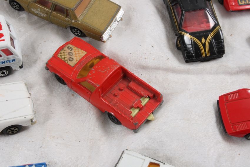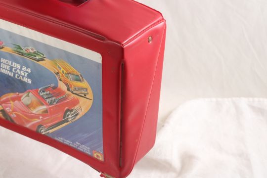 24 Diecast Mini Cars Case with 25 Cars - Hot Wheels, Matchbox, Tomica / Tomy, Ertl and others. One is a Monte Carlo Red Line 1974 as pictured. Please ask questions and read terms & conditions before bidding.