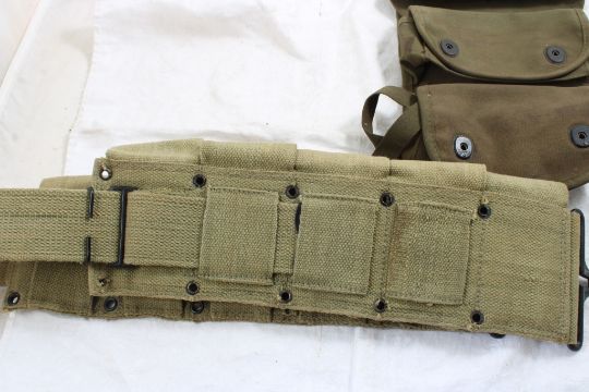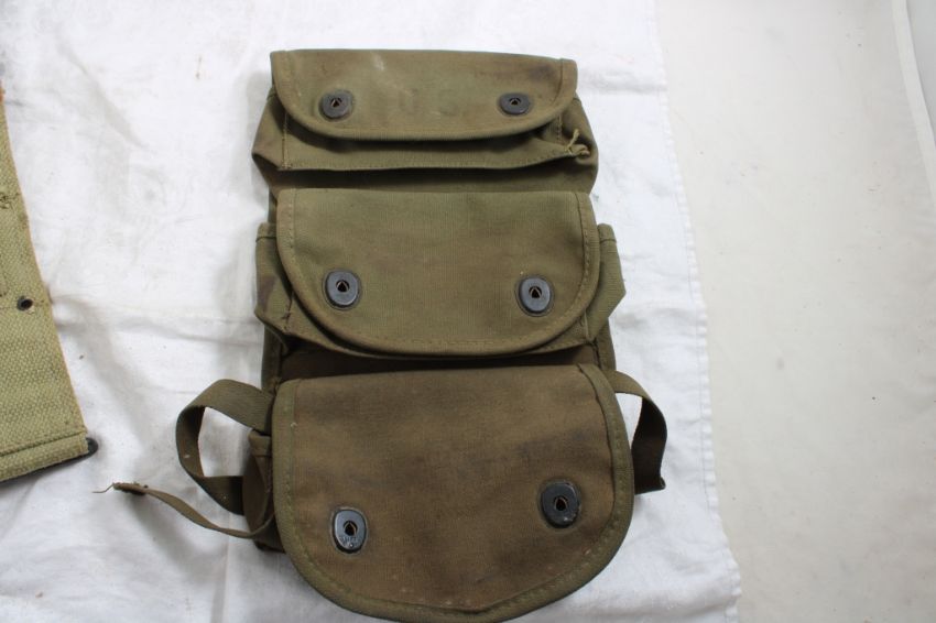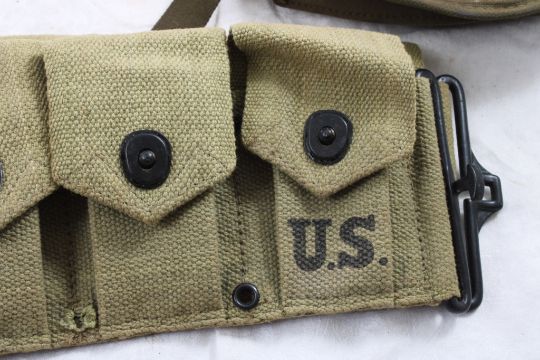 3 Pocket Grenade Carrier, M-1 Garand Clip Belt - Clip Belt may be a reproduction. As pictured. Please ask questions and read terms & conditions before bidding.