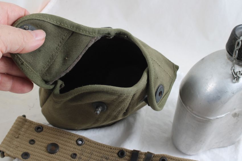 WW2 Military Canteen 1945 & Belts - As pictured. Please ask questions and read terms & conditions before bidding.