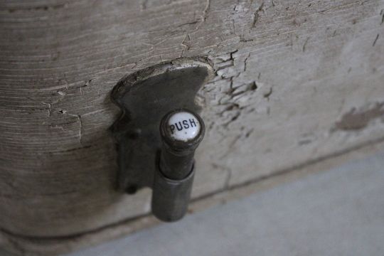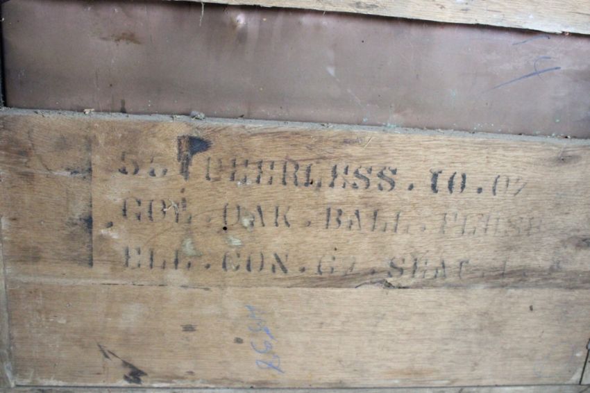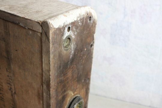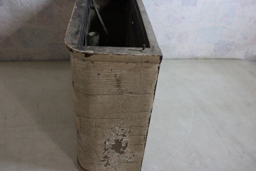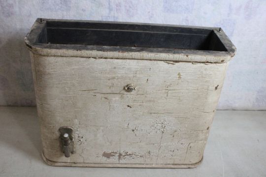 Antique Wood & Copper Toilet Tank w/Flusher Button - Measures 22.5" x 17" x 8". As pictured. Please ask questions and read terms & conditions before bidding.