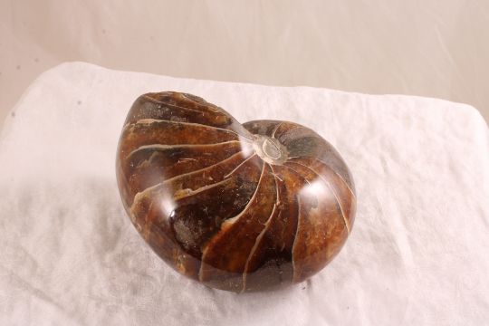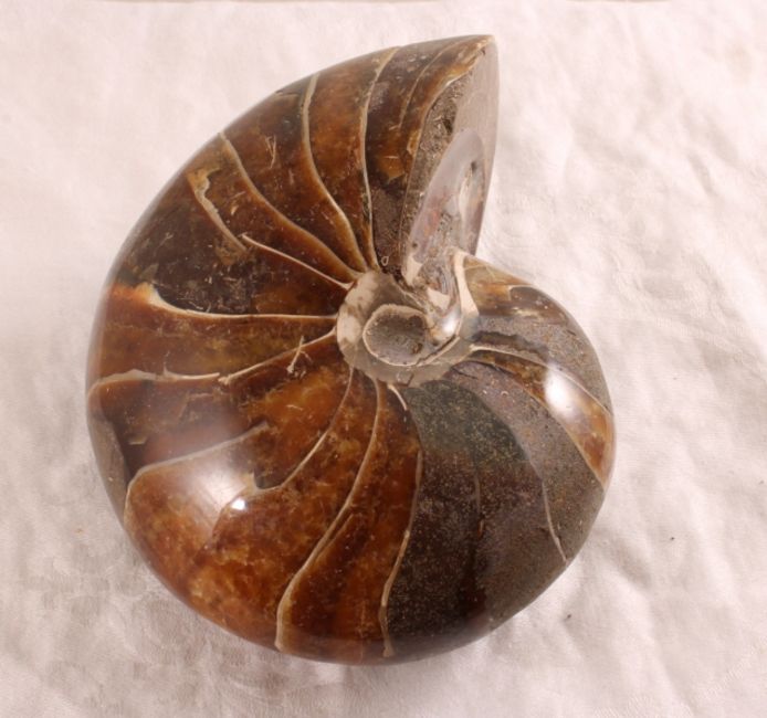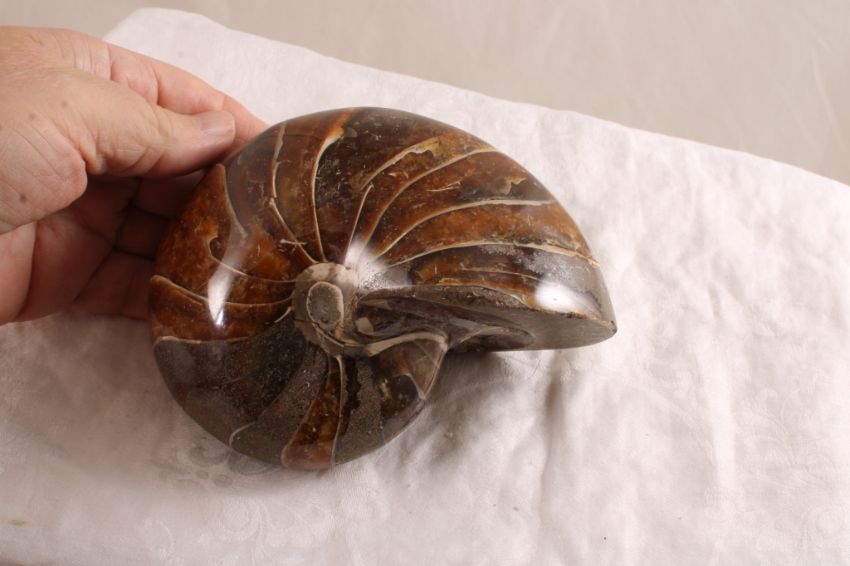 Fossilized Nautilus Shell - Weighs 3 Pounds 2 Oz. Measures 5.5" x 5" x 3" as pictured. Please ask questions and read terms & conditions before bidding.