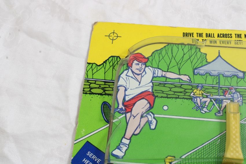 4 Vintage New on Packages Toys - Mr. Chews Game, Super Tennis, Bagatelle Hand held games 2 of 4 are on the card, Midgetoy Rolling Wheels. All as pictured. Please ask questions and read terms & conditions before bidding.