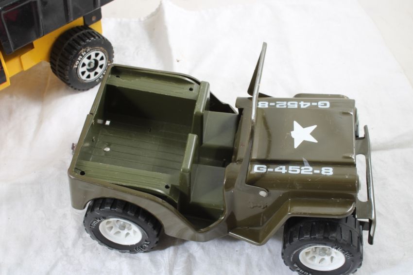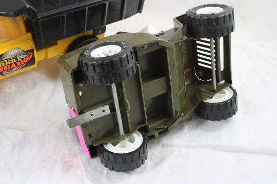 2 Tonka Pressed Steel Jeep & Dump Truck - Pressed Steel Tonka Jeep #G-452-8 and Tonka Trax Pressed Steel Dump Truck. Both as pictured. Please ask questions and read terms & conditions before bidding.