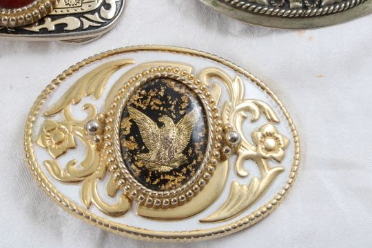 8 Collectible Belt Buckles - As pictured. Please ask questions and read terms & conditions before bidding.