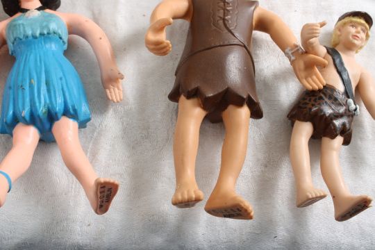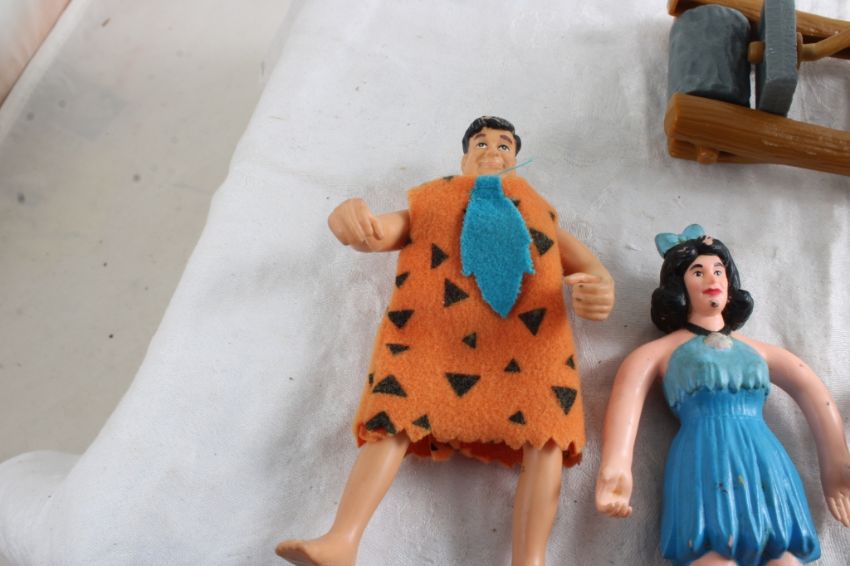 U.C.S. Amblin Flintstone Movie Figures - Fred, Betty, Barney, Bam-Bam, Car from the Movie The Flintstones. As pictured. Please ask questions and read terms & conditions before bidding.