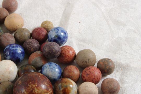 Bennington & Other Clay Marbles, Porcelain Marble - As pictured. Please ask questions and read terms & conditions before bidding.