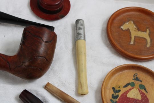 Pipes, Cheroot Holders, Zippo Box Parts, Coasters - As pictured. Please ask questions and read terms & conditions before bidding.