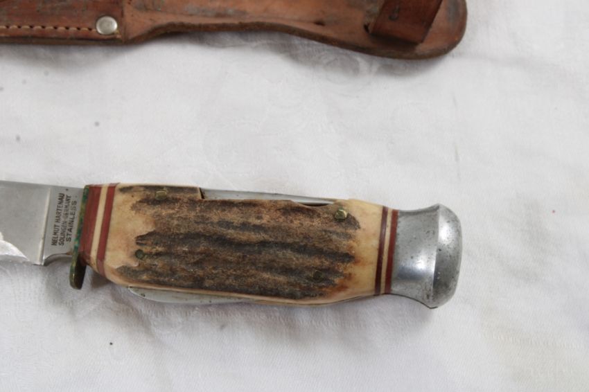 Helmut Hartenau Fixed Blade Knife, Tools in Handle - With Sheath. Solingen Germany. As pictured. Please ask questions and read terms & conditions before bidding.