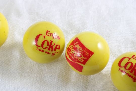5 Coca Cola Advertising Marbles- swirl glow glass - Yellow with Red Lettering Shooter Marbles. As pictured. Please ask questions and read terms & conditions before bidding.