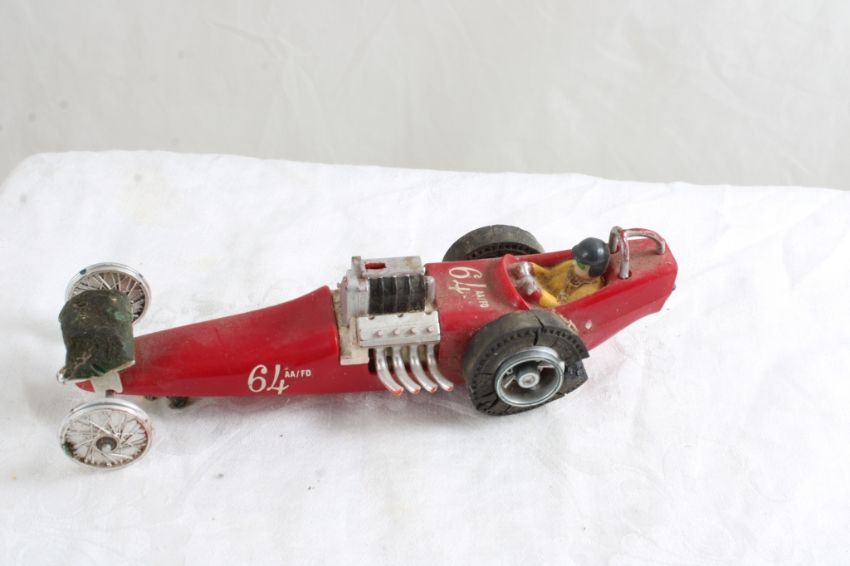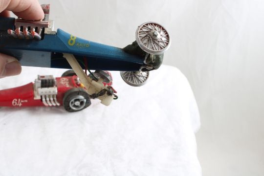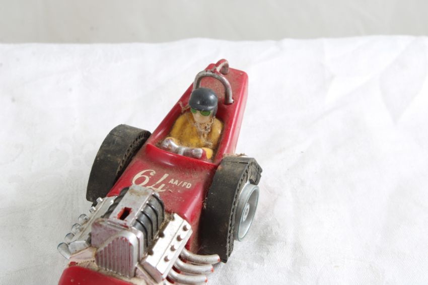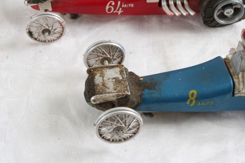 2 Eliminator 1960s Dragster Slot Cars 7" - Blue & Red Dragster Slot Cars 7". Untested, Repair (missing some tires) and need cleaning as pictured. Please ask questions and read terms & conditions before bidding.