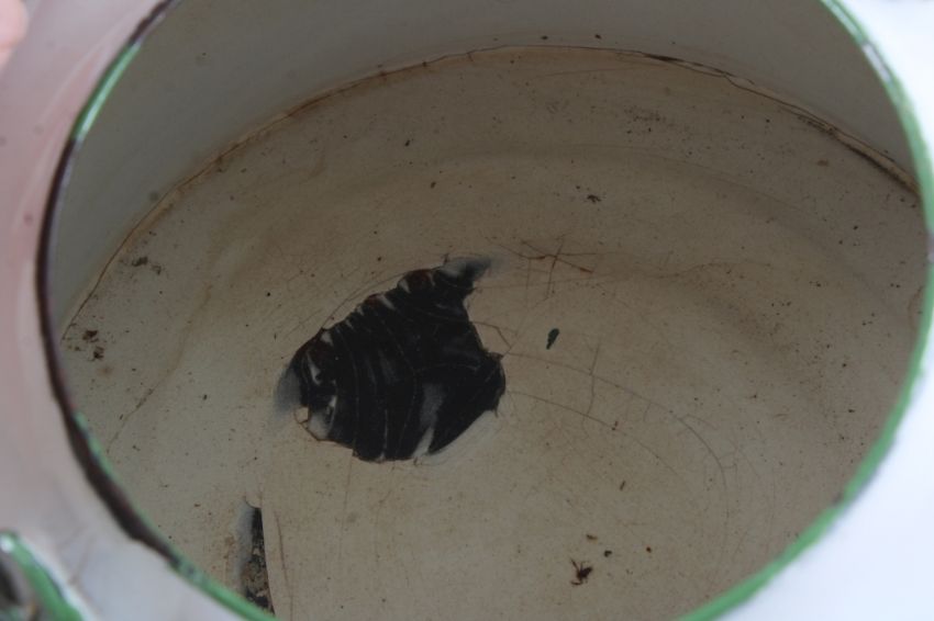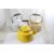 3 Enamelware Wood Bale Handled Teapots - All measure 8" to 9" Tall not counting the handles. White, Cream & Yellow Colors as pictured. Please ask questions and read terms & conditions before bidding.