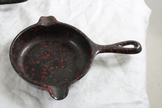 2 Wagner Ware Cast Iron Enamel Skillet Ashtrays - Viceroy Advertising Ashtray, Ernst's Cafe Decorah Iowa Advertising Metal Ashtray & Hills Brothers Plastic Coffee Scoop. All as pictured. Please ask questions and read terms & conditions before bidding.