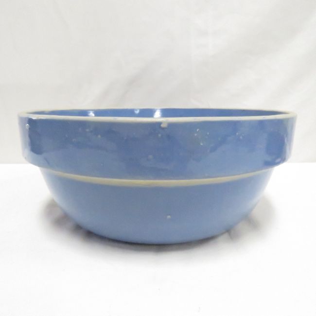 Brown Malcomb & Other Blue Stoneware 10.5" Bowls - blue is unmarked and has small chip on rim, brown has varying colors and several chips on edge- bottom marked Please ask questions and read terms & conditions before bidding.