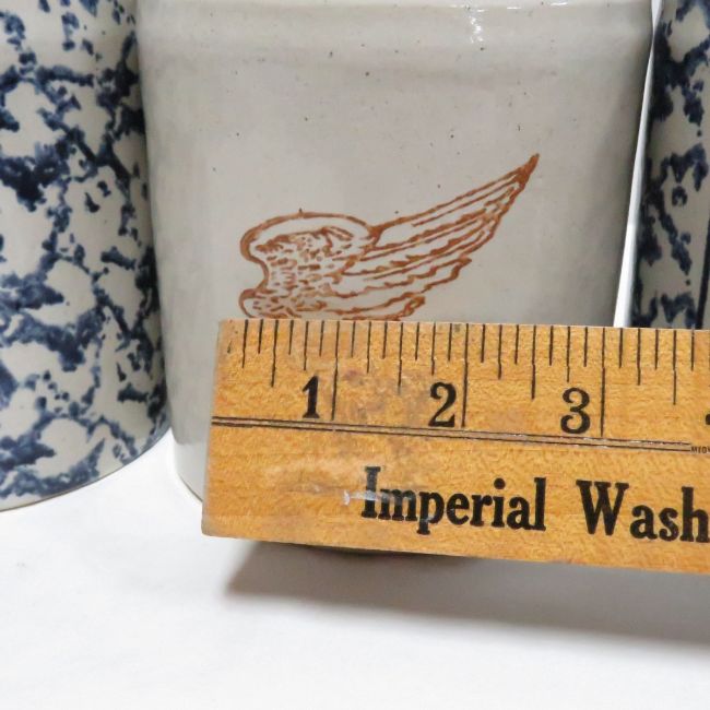 3 WA Painter Red Wing 1qt Canning Jars - 1 spongeware, 1 spongeware with stoneware fruit jar on front is is marked Indiana Wingers 2019 on bottom, 1 with wing. All in very good condition with WA Painter logo on bottom, with rubber rings and lids Please ask questions and read terms & conditions before bidding.