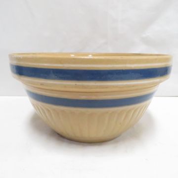 14" & 10" Blue Banded Yellow Ware Bowls - unmarked, some wear but no chips or cracks Please ask questions and read terms & conditions before bidding.