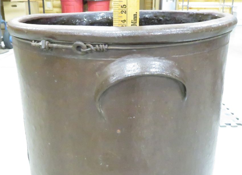 30 Gallon Brown Sewer Pipe Crock - unknown maker- possible Red Wing, not quite round, wire band around top 24.5" tall x approx 22' Please ask questions and read terms & conditions before bidding.