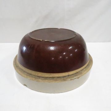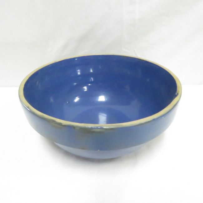 Unmarked Blue & Brown 10.5" Stoneware Milk Pans - both have several small chips on edge. Please ask questions and read terms & conditions before bidding.
