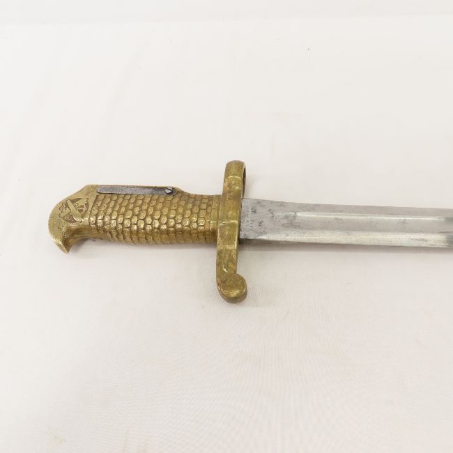 USN Model 1870 2nd type Bayonet & Scabbard - "USN CGS 1870" and other side "AMES MFG CO CHICOPEE MASS" , brass birds head grip, 20 3/8 blade and 24 7/8" OAL. Please ask questions and read terms & conditions before bidding.