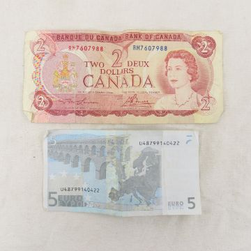 1965 Canadian Silver Mint Set & notes, Euro note - $2, $1, $1 Canadian notes, 5 Euro notePlease ask questions & read terms and conditions before bidding.