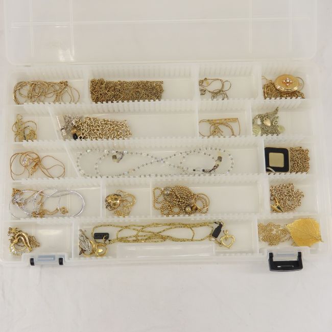 Fashion Jewelry and Watches- Guess, Lia Sophia - Avon, Mickey Mouse and others. Plastic sorting box with chains and more Please ask questions and read terms & conditions before bidding.