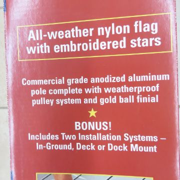 20' US Flag Pole with Flag & Yard Light Set - both are unused in box. Pole set comes with flag and yard or deck mount Please ask questions and read terms & conditions before bidding.