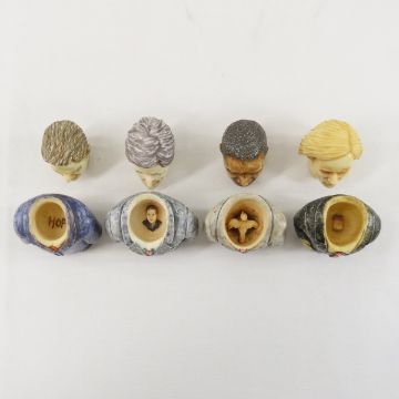 15 Pot Bellys Figurines, Presidential & Historical - Harmony Kingdom Pot Belly figures are Andrew Jackson, JFK, Mary Todd, Bill Clinton, Ronald Reagan,Jimmy Carter, Martin Luther King, Franklin Roosevelt, John Kerry, Uncle Sam, King Louis XIV, Queen Elizabeth, MarieAntoinette, Andy Warhol, Kathryn Howard Please ask questions and read terms & conditions before bidding.