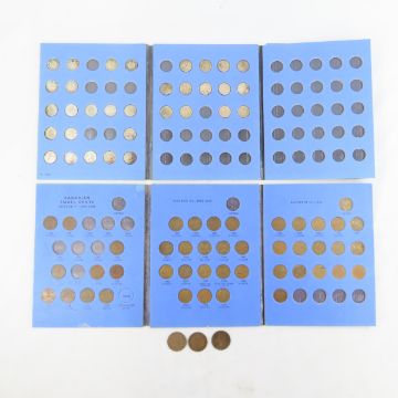 Canadian Silver Dime Book & Small Cent Book - 32 Canadian Silver Dimes Please ask questions and read terms & conditions before bidding.