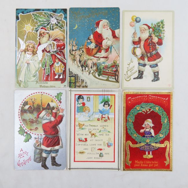 44 Vintage Christmas Postcards, 20 Embossed Santa - mix of posted and unused, readable postmarks 1907-1917 Please ask questions and read terms & conditions before bidding.