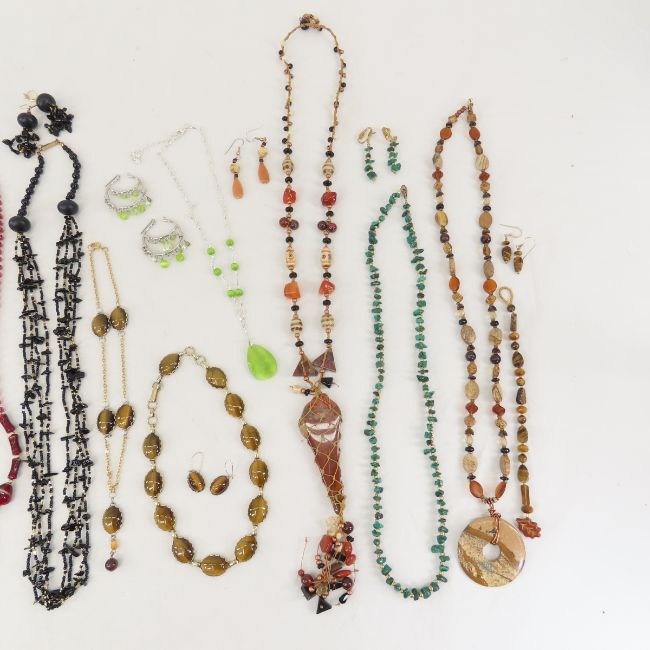 Hematite, Malachite & other Bead Jewelry - Handmade bead necklaces, and some sets- malachite, lapis, agate & other stones Please ask questions and read terms & conditions before bidding.