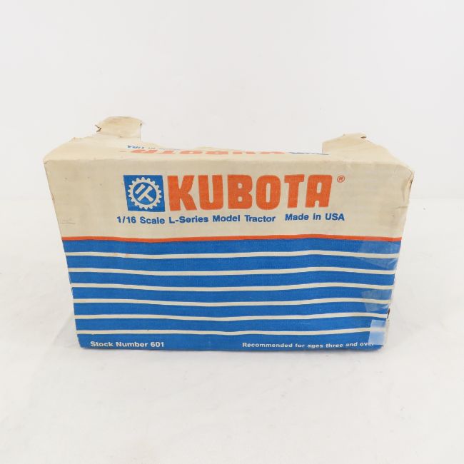 4 Kubota Die Cast Tractors, L-Series & More - All in Boxes - L-Series Tractor, 1/16 Scale, T1460 1/16 Scale Lawn Tractor, ZD28 1/24 Scale Zero-Turn Mower, T1870 1/24 Scale Lawn Tractor Please ask questions and read terms & conditions before bidding.