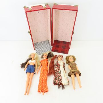 2 Ideal Tuesday Taylor, 1 Pepper & 1 Jody Doll - with 1 Taylor doll stand, and in red metal doll trunk Please ask questions and read terms & conditions before bidding.
