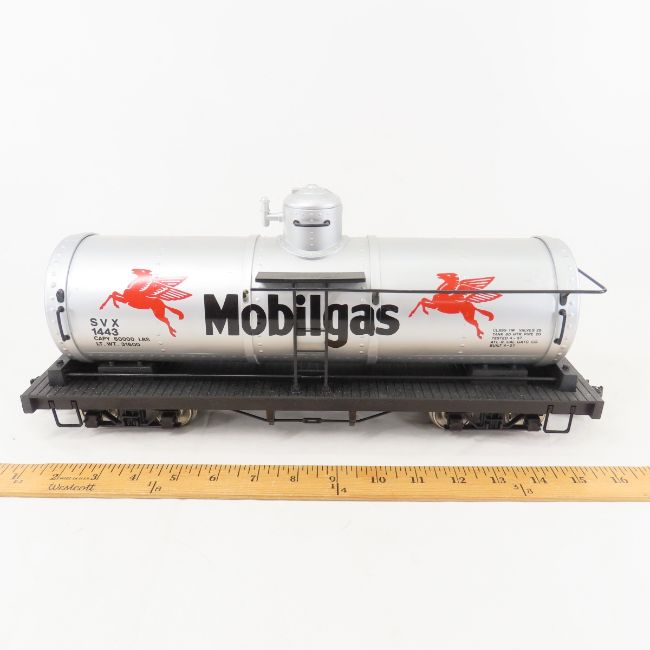 3 Bachmann G Scale Train Cars in Box - Bachmann Big Haulers - 93435 Mobilgas Single Dome Tank Car, 93512 Flat Car with Logs, Rio Grande Southern 401 Caboose Please ask questions and read terms & conditions before bidding.