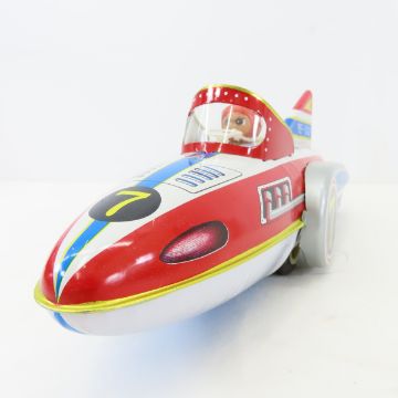 Tin Rocket Car, Child Banging Drum & Pull Tractor - Please ask questions and read terms & conditions before bidding.