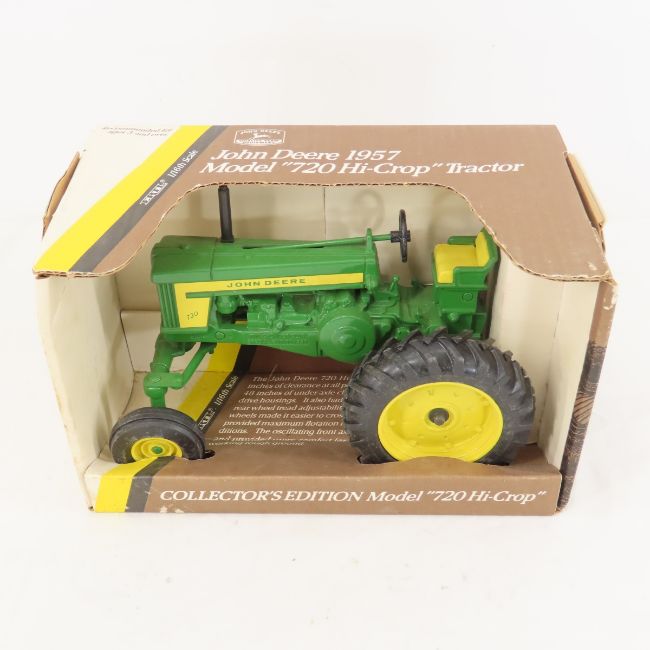 3 Ertl 1/16 Scale John Deere Tractors in Boxes - 1953 Model 60 Orchard Tractor, 1957 Model 720 Hi-Crop Tractor, 1958 Model 630 LP Tractor Please ask questions and read terms & conditions before bidding.
