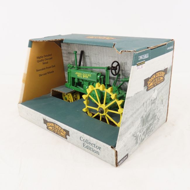 3 Ertl, John Deere Tractors in Box,"B", "R", "GP" - All 1/16 Scale Die Cast - 1928 Model GP Standard Tractor #5767, 1915 Model R Waterloo Boy #559, 1935 Model B Tractor #5822DA Please ask questions and read terms & conditions before bidding.