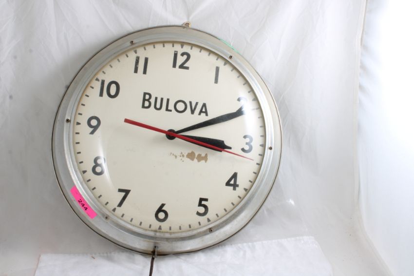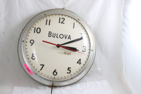Bulova Electric Wall Clock - Working - As pictured. Please ask questions & read terms and conditions before bidding.